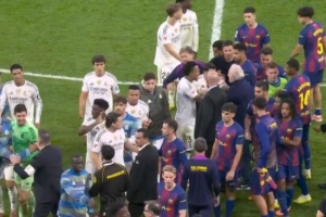 安保介入!皇马巴萨赛后爆发大规模冲突,维尼修斯亚马尔等人参与