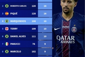 24直播网讯 德转数据显示,自1992-93赛季以来,后卫拉莫斯以142场17球荣登欧冠射手榜榜首。卡洛斯、皮克以16球紧随其后,马尔基尼奥斯、特里和阿尔维斯同以10球并列第四。