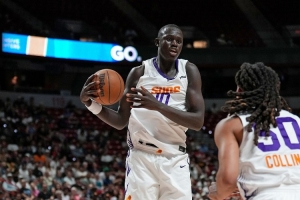 24直播网讯 NBA季前赛太阳战胜湖人。主帅奥特点评新秀马卢阿奇表现,称他树立了新标杆,并赞扬其出色篮板和积极调整的态度。本场比赛,马卢阿奇高效砍下17分8篮板,并有抢断和盖帽进账,展现出全面实力。