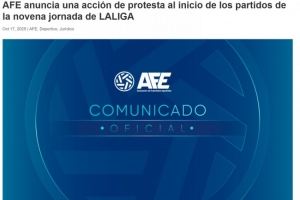 声明写道:AFE在西甲各队队长的支持下宣布,在西甲第9轮所有比赛开赛前进行抗议,以表达对西甲缺乏透明度、缺少对话和未能保持一致性的不满,特别针对在美国举办比赛的决定。