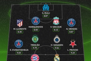 24直播网讯 欧冠首轮最佳阵容出炉。巴黎圣日耳曼成为最大赢家,共有姆巴佩、马尔基尼奥斯、努诺-门德斯和克瓦拉茨赫利亚四名球员入选。马赛的鲁利与巴黎的努诺-门德斯同获全场最高分8.87分。拜仁前锋凯恩、葡体边锋特林康等表现出色的球员也成功入选。