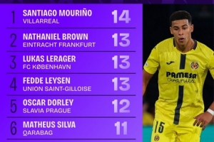 24直播网讯 欧冠联赛前三轮铲球榜出炉。比利亚雷亚尔后卫圣地亚哥-穆里尼奥以14次铲球位居榜首,法兰克福的布朗等三名球员以13次并列第二。该榜单展现了本赛季欧冠球员在防守端的积极拼抢。