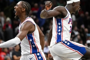 “恩比德和乔治你们复健认真一点啊!费城东部第一啦!!”