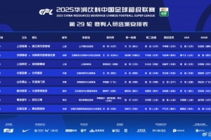 24直播网讯 中国足协公布中超第29轮裁判名单。焦点战海港vs浙江由傅明执法,海牛vs三镇则启用沙特裁判穆罕默德-萨米。其余场次裁判及VAR也已全部确定。