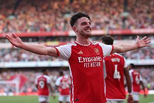 24直播网讯 西汉姆名宿科蒂盛赞赖斯是顶尖全能中场,认为他能胜任场上一切。科蒂曾料其未来或改踢后卫,如今赖斯已用防守、覆盖、传球及关键进球证明实力,其表现堪比杰拉德、兰帕德,是独一无二的中场大师。