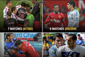苏亚雷斯生涯还曾因三次咬人被禁赛,2013年因咬伊万诺维奇被禁赛10场,以及因咬巴卡尔被禁赛7场,2014年因咬基耶利尼被禁赛四个月9场。