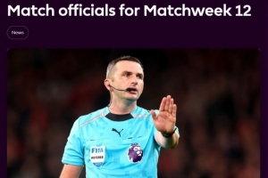 24直播网讯 英超官方公布第12轮裁判安排。焦点战阿森纳vs热刺由迈克尔-奥利执法,VAR为斯图尔特-阿特维尔。本轮其余比赛,如利物浦vs诺丁汉森林、纽卡vs曼城等场次的主裁及VAR人选也已全部确定。
