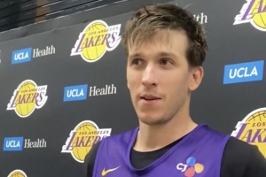 谈到队友詹姆斯今日回归训练,里夫斯说:“感觉很棒。他一如既往地充满活力,他能回来真是太棒了。”