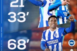 24直播网讯 在联赛杯第三轮中,布莱顿6-0大胜巴恩斯利。22岁球员迭戈·戈麦斯表现出色,上演大四喜。本赛季联赛杯两场,他已狂轰5球,状态火热。