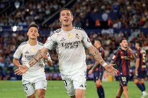体育资讯09月24日讯 西甲第6轮,皇马客场4-1大胜莱万特,18岁的皇马小将马斯坦托诺首发出战71分钟,收获加盟球队后的首粒进球。
