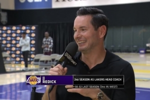24直播网讯 湖人主帅雷迪克接受采访,透露尚未与詹姆斯打高尔夫。他解释因自己时间有限,且詹姆斯当时有推广工作和结婚纪念日安排。不过,雷迪克已与布朗尼约好,并称赞其挥杆流畅,是天生的高尔夫好手,甚至略感羡慕。