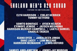 24直播网讯 英格兰U20队公布了迎战瑞士U20的球员名单。门将由塞特福德领衔,后防线包括曼联的海文。中场和前锋线上,沃特森、阿森纳的塞特福德等球员悉数在列,球队正为比赛做准备。