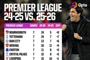 24直播网讯 根据OPTA统计,伯恩茅斯是本赛季英超进步最显著的球队,较上赛季同期多拿9分,排名第一。热刺、曼城和阿森纳紧随其后,分别增加7、6、5分。而维拉和布莱顿则退步明显,均减少9分。