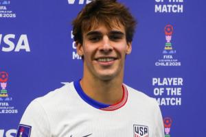 24直播网讯 在世青赛16强赛中,20岁美国小将克雷马斯基梅开二助,率队3-0完胜意大利。他本届赛事已4场5球2助攻,表现抢眼。该球员现租借自迈阿密国际,德转身价500万欧,有望被帕尔马买断。